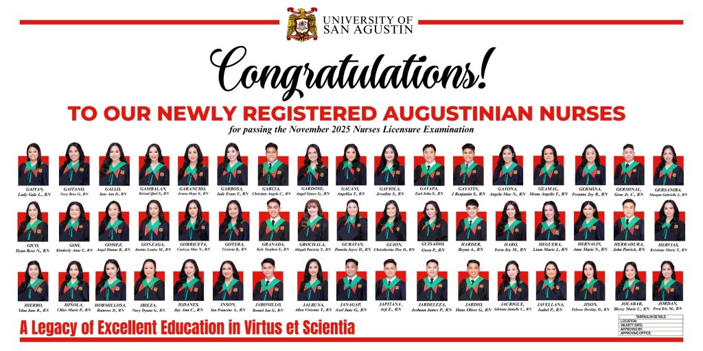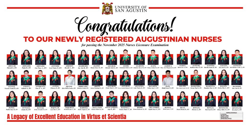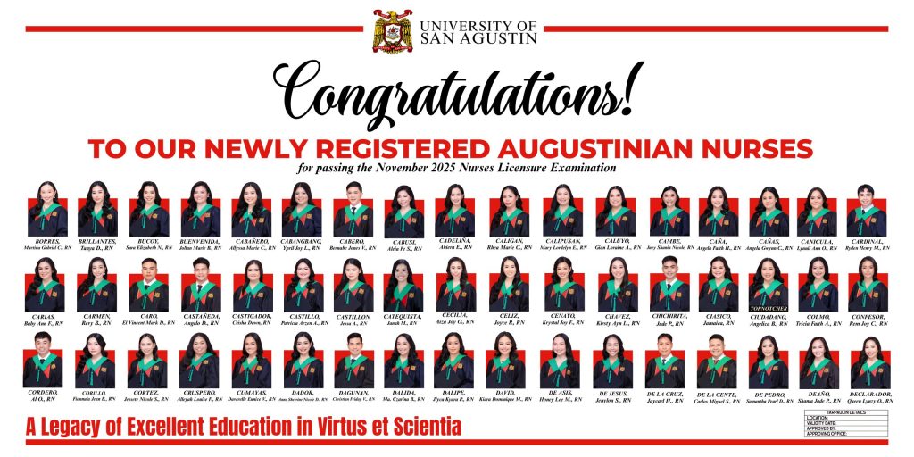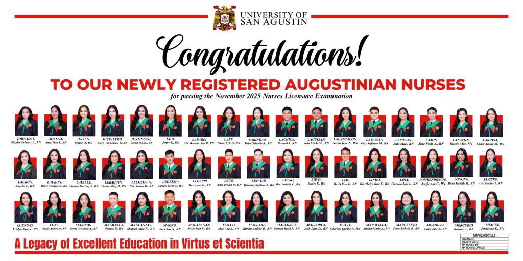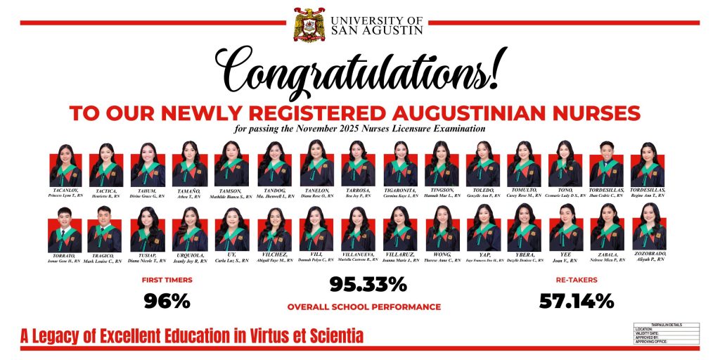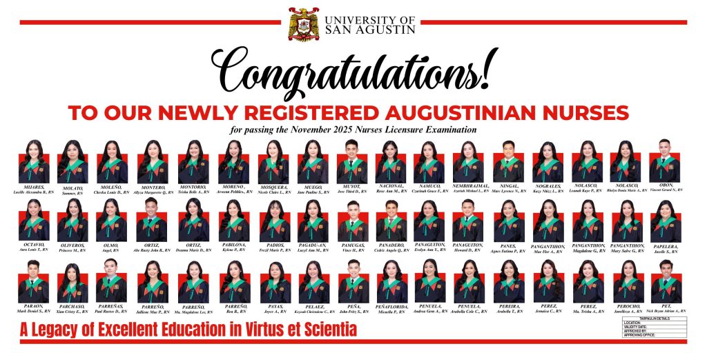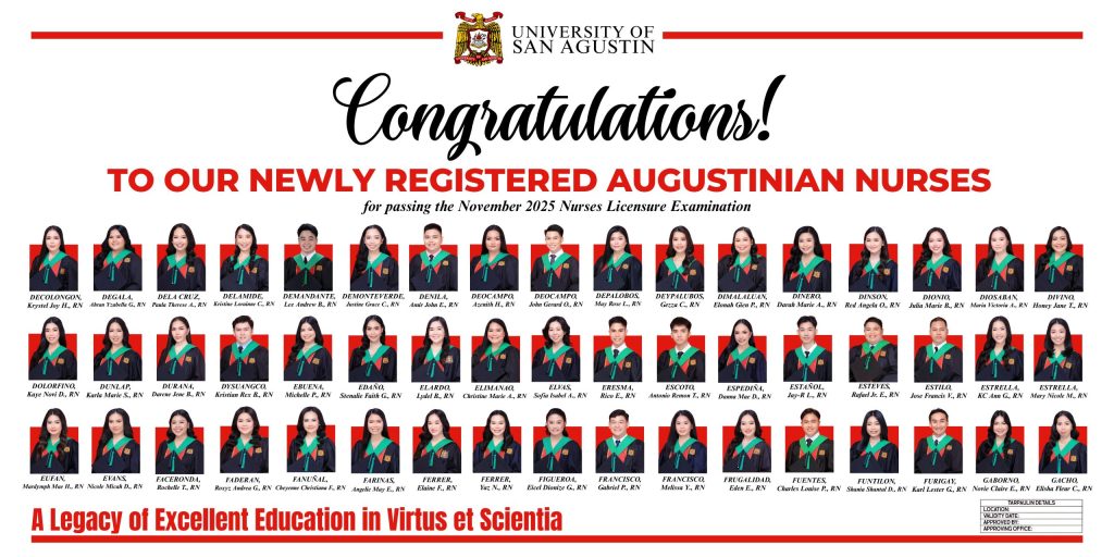 Celebrating our 388 new Augustinian nurses who have upheld our tradition of excellence with an outstanding 95.33% overall performance in the Nurse Licensure Examination – November 2025, held in Iloilo City.