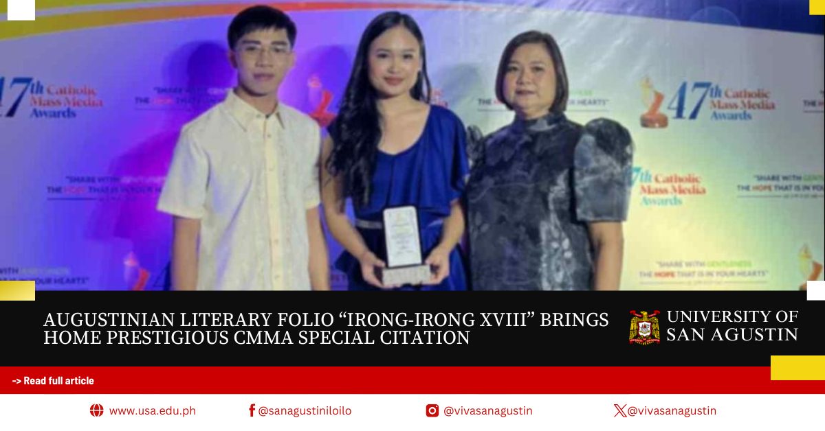 Warmest Augustinian greetings to our valued stakeholders, partners, and collaborators of the University of San Agustin-Iloilo of the Philippines. Our educative community welcomes and enjoins all interested parties to actively engage in our core processes of instruction, research, community extension, and internationalization for a purposive advancement of our shared vision and mission, anchored on excellence, unity, and service. This academic year, consistent with the university’s future-thinking direction to its envisioned strategic position, we manifest a revitalized commitment to the continual implementation and strengthening of the essential goals in the sequential signification: Augustinian identity and transformative mission, academic excellence, organizational autonomy, and mobilization of individuals and programs for global engagements.