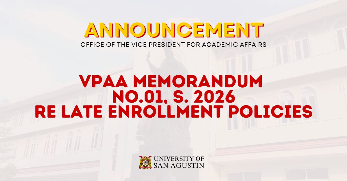 Warmest Augustinian greetings to our valued stakeholders, partners, and collaborators of the University of San Agustin-Iloilo of the Philippines. Our educative community welcomes and enjoins all interested parties to actively engage in our core processes of instruction, research, community extension, and internationalization for a purposive advancement of our shared vision and mission, anchored on excellence, unity, and service. This academic year, consistent with the university’s future-thinking direction to its envisioned strategic position, we manifest a revitalized commitment to the continual implementation and strengthening of the essential goals in the sequential signification: Augustinian identity and transformative mission, academic excellence, organizational autonomy, and mobilization of individuals and programs for global engagements.