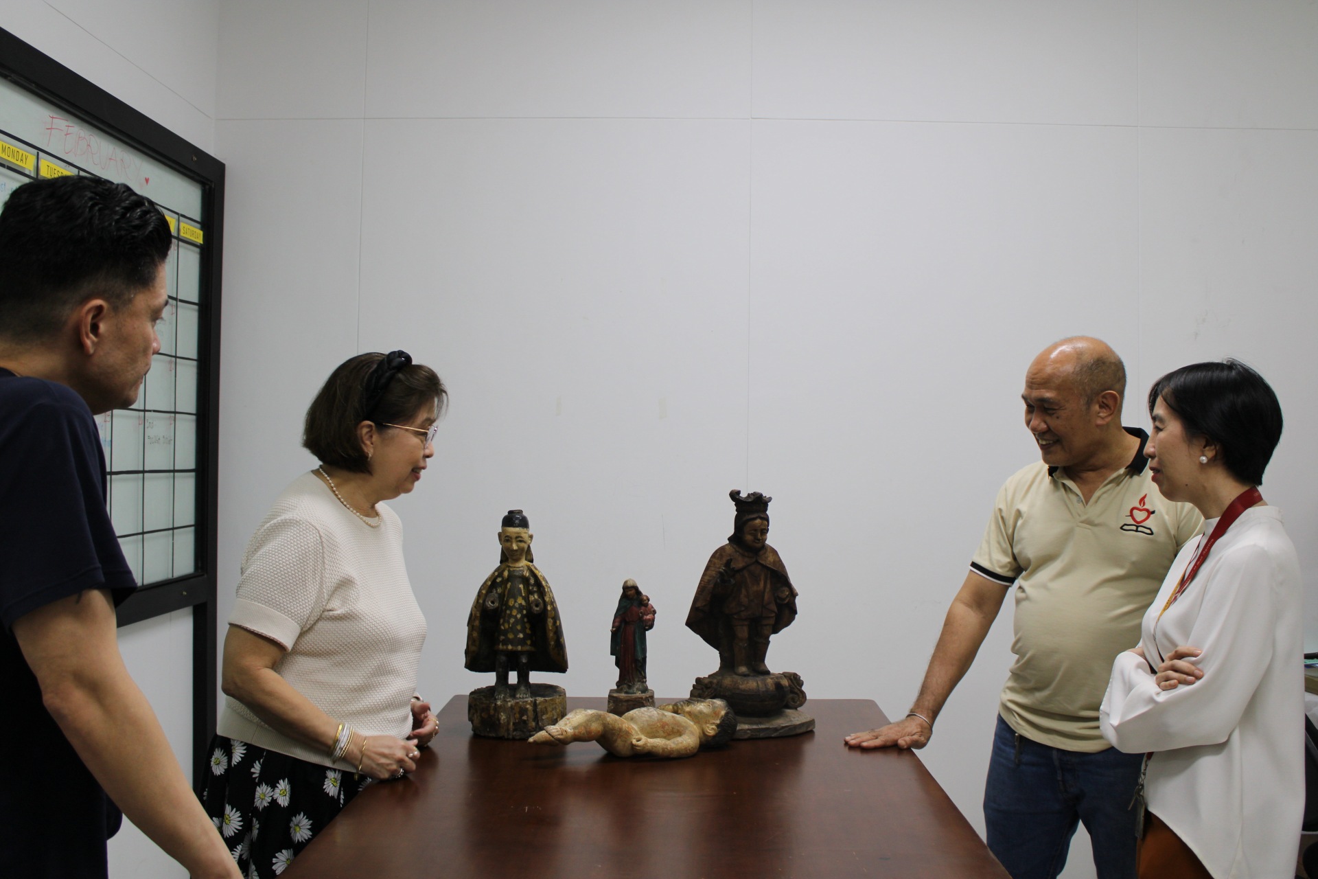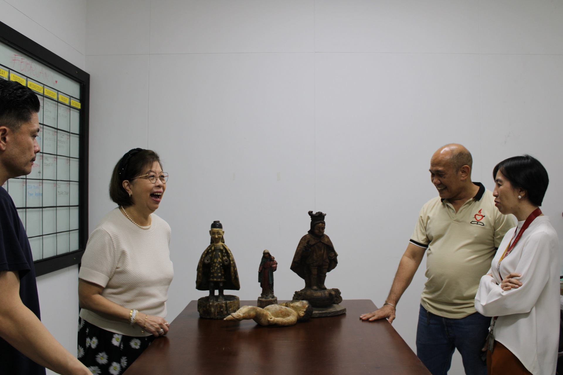 In a heartfelt act of cultural generosity, Mrs. Ma. Luisa Jesena-Santa Maria, a College of Business alumna, formally donated rare and priceless religious artifacts to the Archives and Museum through a solemn signing of the Deed of Donation. The collection includes breathtaking sculptures of the Santo Niño bearing distinctive Chinese features, the Baby Jesus, and the Virgin Mary, all believed to have been crafted by skilled local Filipino artisans. The remarkable collection traces its origins to her mother, Leticia Javellana Jesena, a passionate and dedicated collector who spent her lifetime gathering wooden religious relics, fine porcelains, jewelry, and antique furniture, turning the family home into a cultural destination where tourists and enthusiasts would visit— a passion she also cultivated into a modest business. Through this generous donation, Mrs. Santa Maria not only honors her mother’s lifelong devotion but ensures that these irreplaceable pieces of Philippine faith and artisanship will be preserved, studied, and celebrated by generations to come.