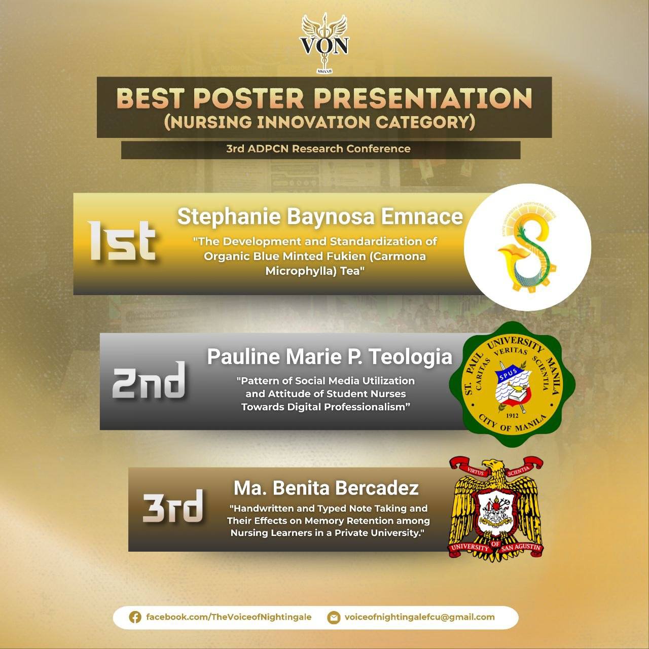 We hope that this experience will inspire Mr. Figueroa and Ms. Bercadez to develop a passion for research and appreciate how evidence-based practices are shared among nurses at research conferences. God bless.
