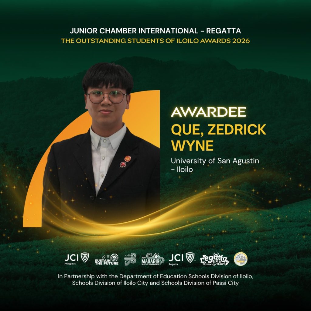 Congratulations to Mr. Zedrick Wyne Que, a Level IV nursing student and the President of the University of San Agustin Student Government (USASG), on being awarded The Outstanding Students of Iloilo Award (TOSIA) for the College Category this year!