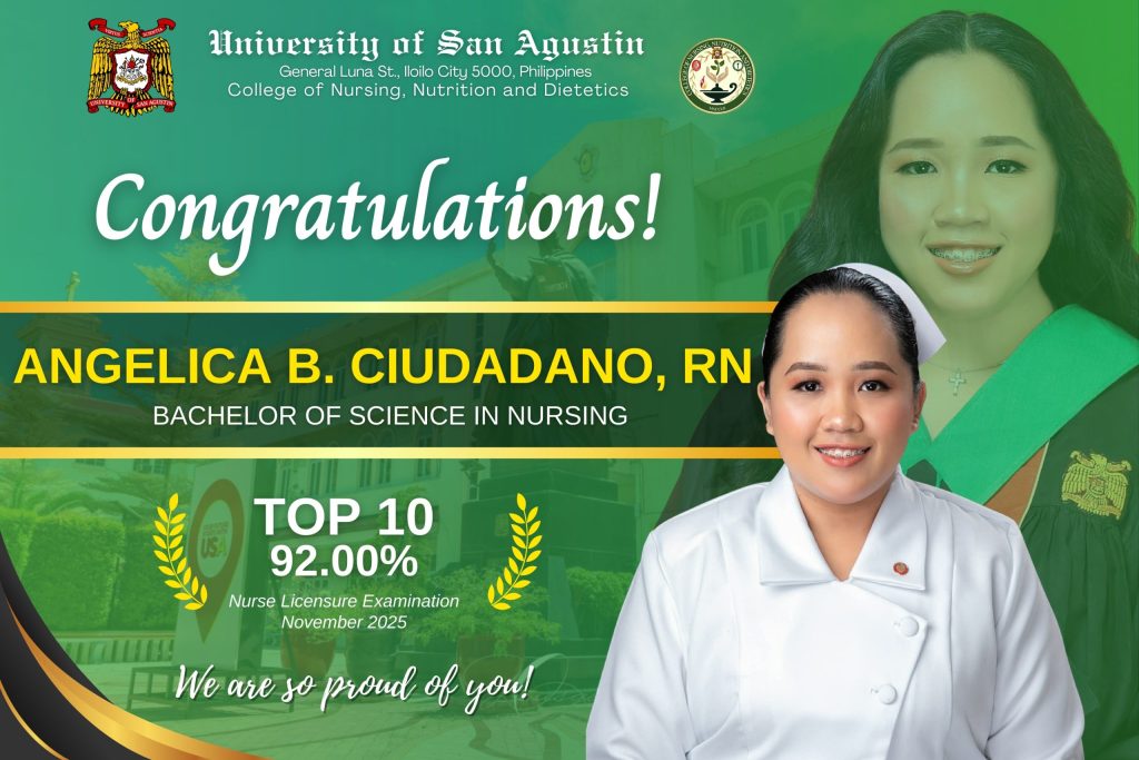 Congratulations to Ms. Angelica B. Ciudadano, RN, for securing the Top 10 Spot in the November 2025 Nurse Licensure Examination!