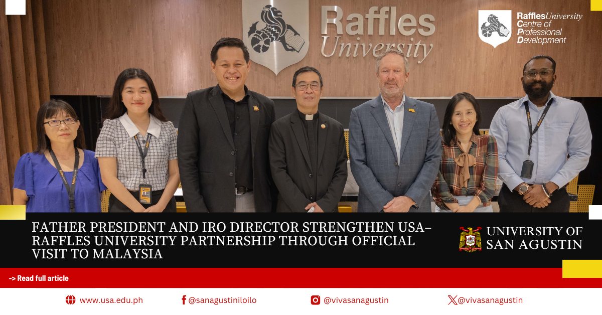 Warmest Augustinian greetings to our valued stakeholders, partners, and collaborators of the University of San Agustin-Iloilo of the Philippines. Our educative community welcomes and enjoins all interested parties to actively engage in our core processes of instruction, research, community extension, and internationalization for a purposive advancement of our shared vision and mission, anchored on excellence, unity, and service. This academic year, consistent with the university’s future-thinking direction to its envisioned strategic position, we manifest a revitalized commitment to the continual implementation and strengthening of the essential goals in the sequential signification: Augustinian identity and transformative mission, academic excellence, organizational autonomy, and mobilization of individuals and programs for global engagements.