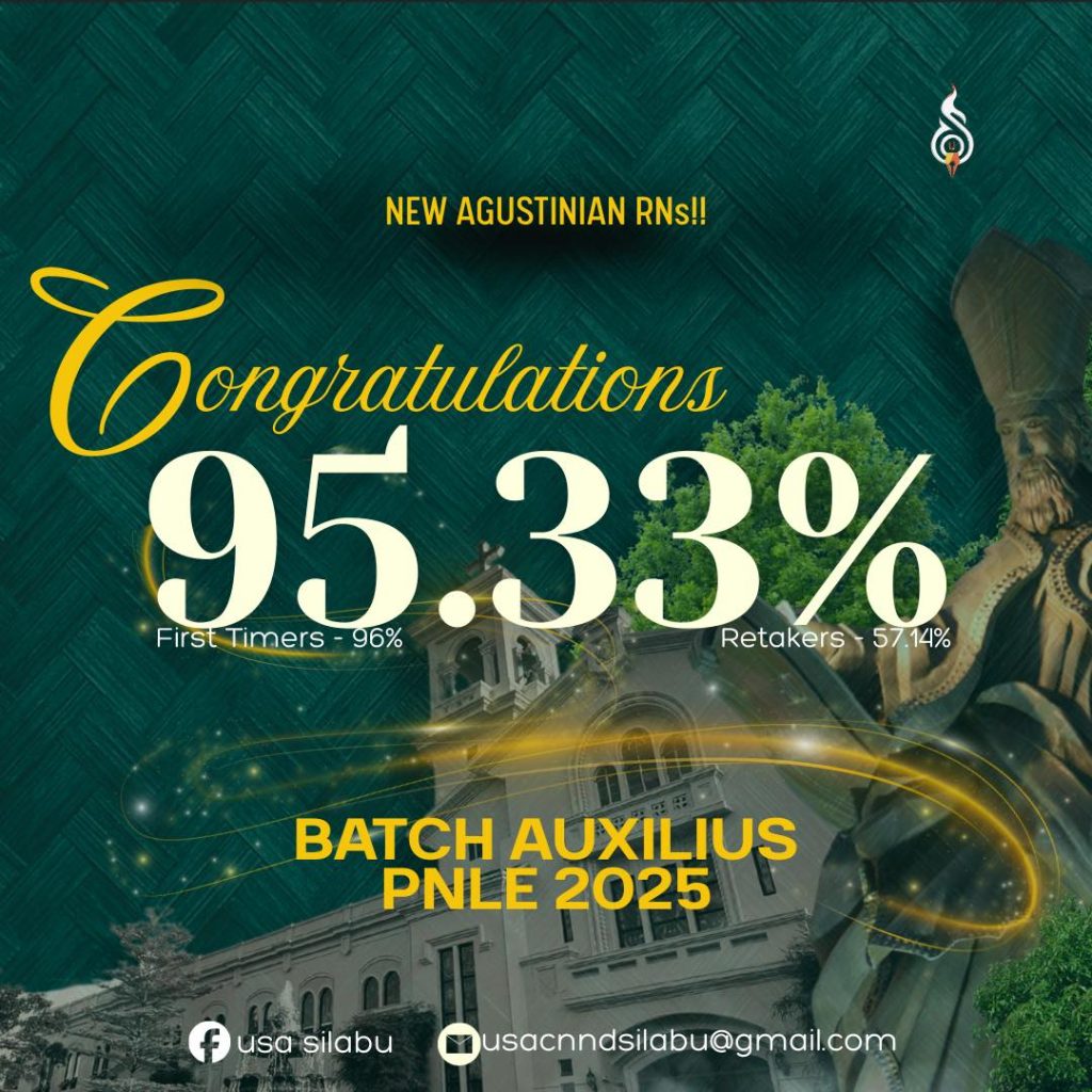 With an overall passing rate of 95.33%, the Augustinian community celebrates the achievements of BATCH AUXILIUS with pride. With first time takers having a passing rate of 96% and 57.14% for the retakers. This success is more than a personal triumph; it is a testament to the collective spirit, support, and guidance of the entire community.
