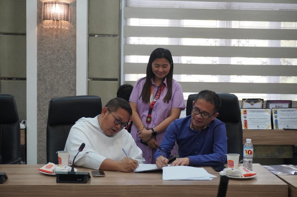 USA Representatives, VP for Administration and Finance Rev. Fr. Airmark Asor, OSA and Rev. Fr. Jessie, Tabobo, OSA sign the CBA.