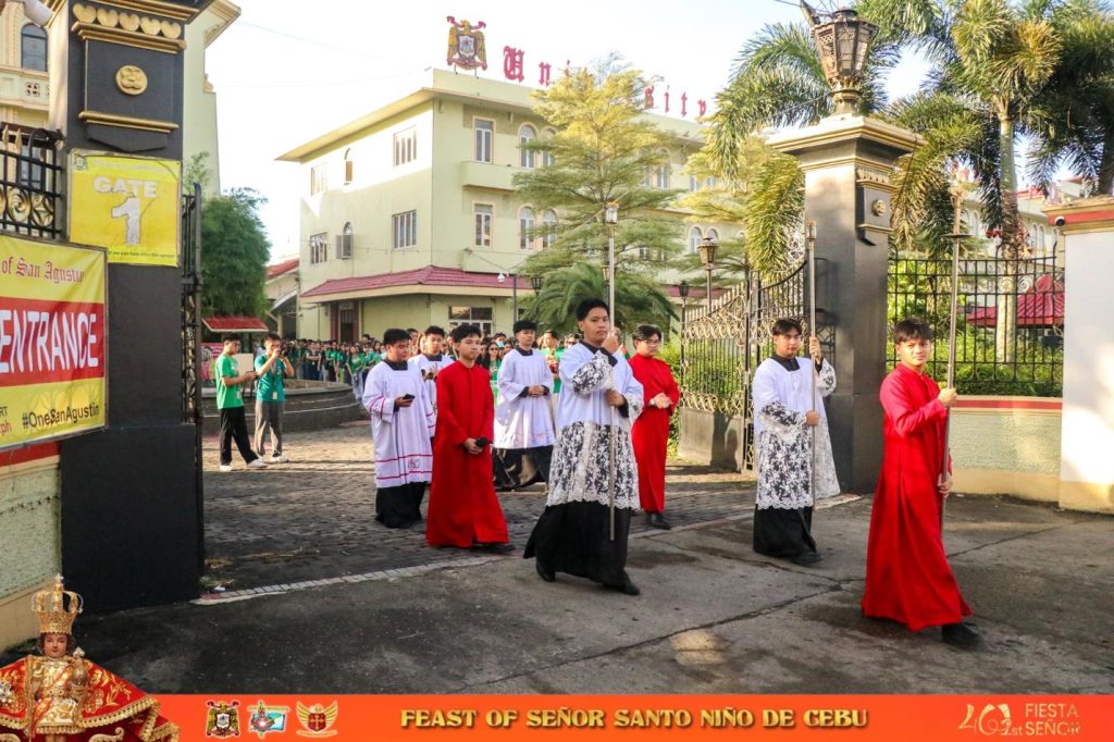 The Feast of the Santo Niño de Cebu on January 18, 2026, commenced with a Solemn Foot Procession that passed through General Luna Street, Mabini Street, Delgado Street, and Jalandoni Street. This was followed by the enthronement of the image of the Santo Niño de Cebu, presided over by Fr. Glenn A. Macorol, OSA, Spiritual Adviser of the Cofradía del Santo Niño de Cebu and University Chaplain. The celebration continued with the Eucharistic Celebration, presided over by Fr. Jessie Tabobo, OSA, the Institutional Legal Counsel.