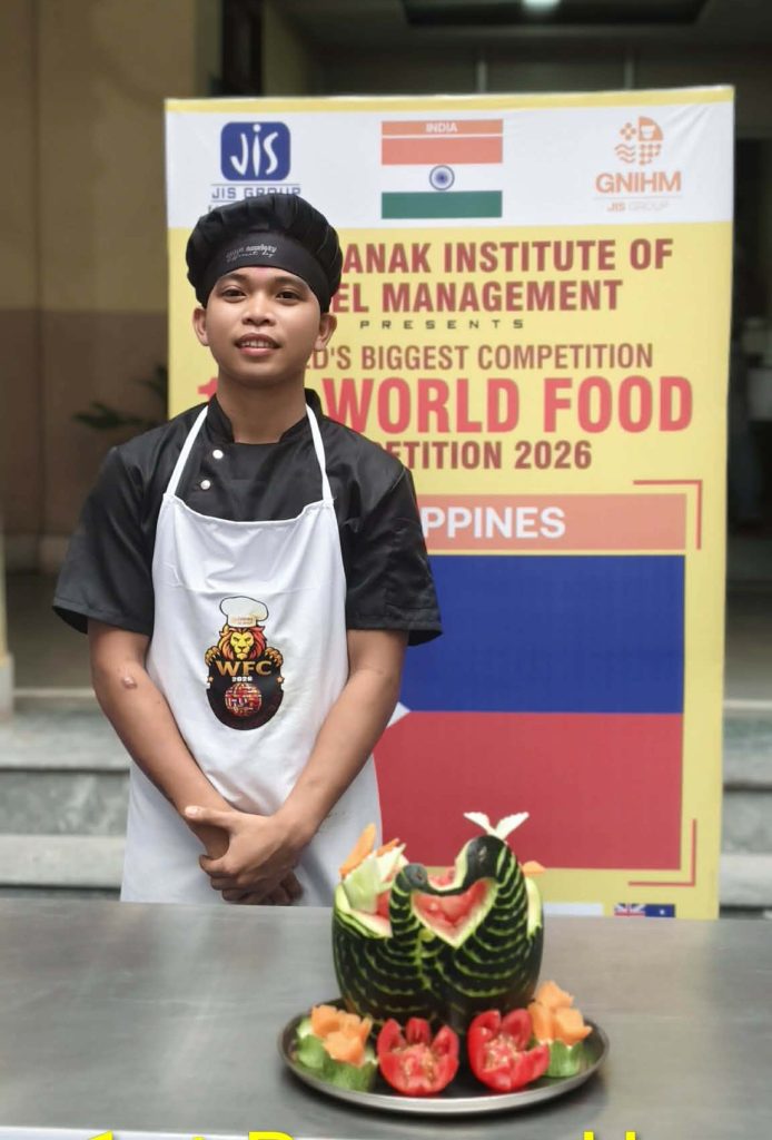 The University of San Agustin (USA), through its College of Business, proudly represented the Philippines at the World Food Competition 2026, held on 10–13 March 2026 in Kolkata, India, where Allen Jay Gabasa, a third-year Hospitality Management student, earned 1st Runner-Up in the Fruit Carving Competition.