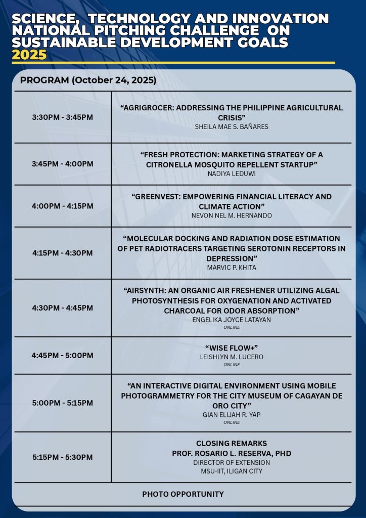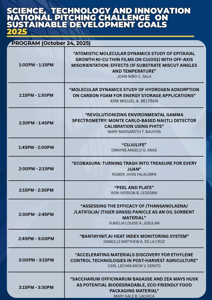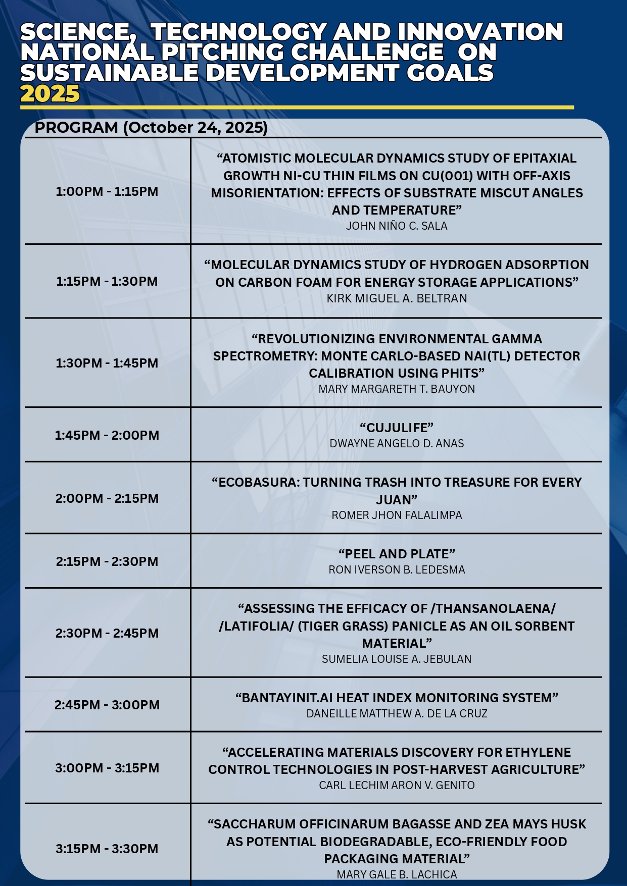 We congratulate Ma. Jane P. Villanueva, MILE, MPH, LPT, RN, our Public Health Nursing Coordinator, for actively participating during the recently concluded Science, Technology, and Innovation National Pitching Competition on Sustainable Development Goals (SDG) 2025 held at the University of San Agustin, Iloilo City, on October 24, 2025.